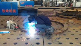 公司現擁有交流焊機16臺,氬弧焊機4臺,埋弧焊機3臺,等離子焊機3臺,等離子切割機2臺,數控切割機3臺,卷板機3臺;能夠完成5mm~200mm鋼板的下料,卷板能力最大為80mm;能夠焊接碳鋼,不銹鋼,雙相鋼,鑄鋼等材料;具有超聲波、射線、磁粉、滲透等無損檢測手段,焊縫經檢測可達到NB/T47013 II級以上。所有人員都具有勞動人事部門頒發的資質,焊接工藝評定均按照JB/T4708《鋼制壓力容器焊接工藝評定》執行,并根據多年來的生產經驗,對每種材料的焊接參數進行了優化;同時采用等離子噴焊、自動埋弧焊等先進焊接技術,配合變位工作臺等焊接工裝,保證焊縫質量的同時提高了效率。可生產各類鋼板焊接閥門及管件等產品,年焊接能力1.2萬噸。