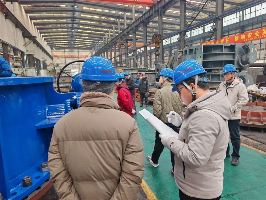 2025年2月27日,引江濟淮二期工程閥門4標第二批次設備出廠驗收會在公司召開,由業主、監理、設計、施工、第三方檢驗等單位共同組成驗收小組,對設備性能、文件資料等進行檢查。閥門4標所有設備均通過驗收。
